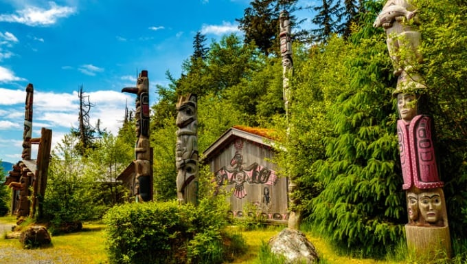 Ang mga totem pole, na kilala rin sa Japan, ay nagmula sa mga baybaying rehiyon sa hilagang-kanluran ng North America, kabilang na ang Alaska. Ang mga taong Tlingit na nanirahan malapit sa Ketchikan ay may mayamang tradisyon sa pag-ukit ng totem.