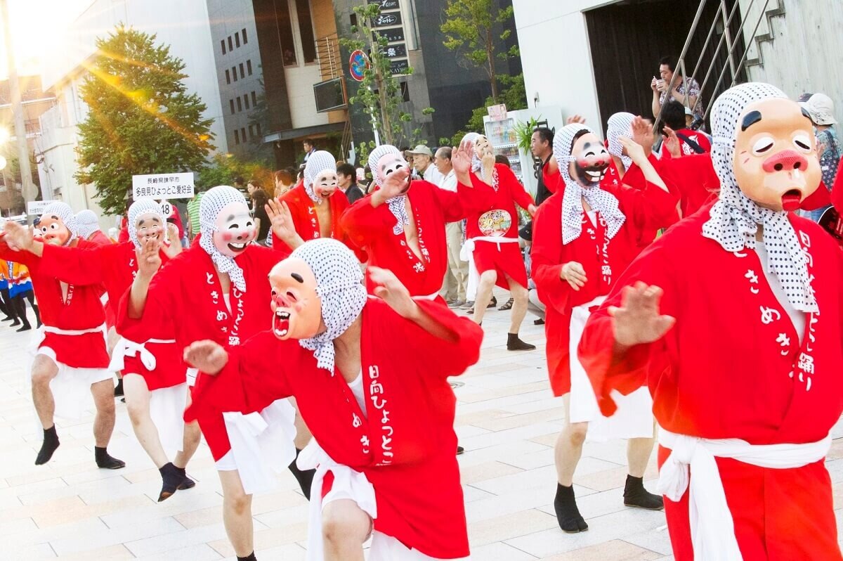 Alam mo ba na tanyag ang Lungsod ng Hyuga sa Hyottoko? Tuwing Agosto, isinasagawa ng buong lungsod ang Hyottoko Festival, kasama na ang bisperas na pagdiriwang bago ang araw ng pista—patunay kung gaano kahalaga ang Hyottoko dito.
