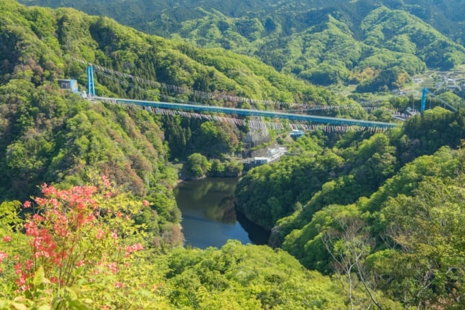 Ang Ryujin Suspension Bridge, na matatagpuan sa Ibaraki Prefecture, ay isa sa pinakamataas at pinakamahabang hanging tulay sa Japan. Ang tulay mismo ay kahanga-hanga, ngunit ang tanawin mula sa itaas tuwing unang tag-init ay kamangha-mangha, na nagbibigay-daan upang lubos mong masiyahan sa luntiang tanawin.