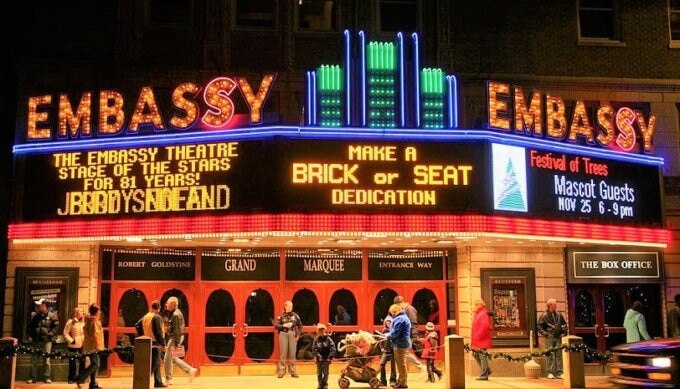 Ang The Historic Embassy Theatre sa Fort Wayne ay kilala sa napakahusay nitong acoustics, kaya bawat tunog ay malinaw at buo. Isa itong paboritong destinasyon ng mga lokal at turista para sa iba’t ibang palabas — mula sa concerts at classical performances hanggang Broadway-style shows. Kahit na kilala ang Broadway sa New York, maaari ka ring makapanood ng world-class productions dito mismo sa Embassy Theatre.