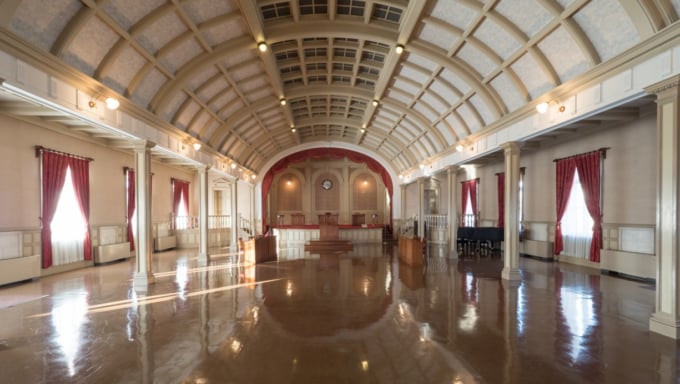Ang disenyo ng Pangunahing Bulwagan ay sagisag ng karangyaan, na may masalimuot na dekorasyong stucco sa kisame na muling ibinalik ng mga bihasang artisan. Nakatago sa mga detalyeng ito ang mga simbolo ng Prepektura ng Yamagata tulad ng safflower at seresa—kaya’t masaya ring maghanap ng mga ito habang bumibisita.