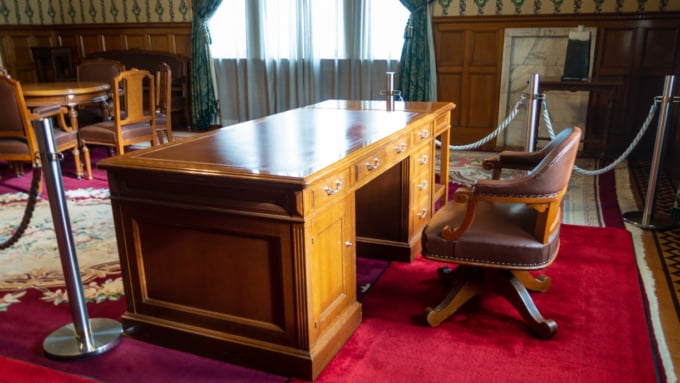 Ang Opisina ng Gobernador ay nagsilbing lugar ng pagtatrabaho ng gobernador ng prepektura. Upang maipakita ang orihinal nitong anyo, maingat na ibinalik ang mesa, mga upuan, at wallpaper. Sa pagbabalik ng wallpaper, ginamit ang mismong disenyo mula sa orihinal na pader na may mga motif ng granada at ubas, upang mapanatili ang kasaysayan at katotohanan ng disenyo.