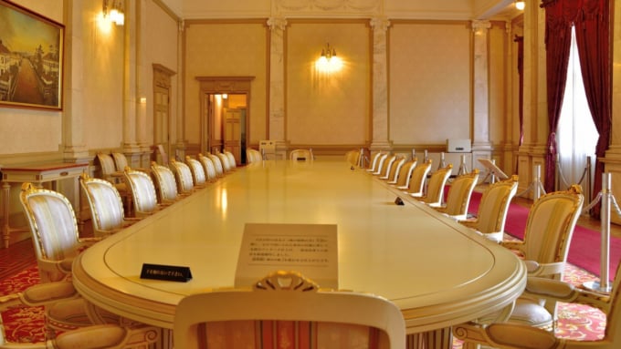 Ang karpet na nakalatag sa sahig ay isa ring mahalagang pamanang-kultura—hinabi sa Prepektura ng Yamagata noong 1960 (Showa 35) at ginamit sa opisina mula noon. Maingat itong nilinis at muling inilatag, kaya nananatiling maganda at buo hanggang ngayon. Kapag bumisita ka, huwag kalimutang tingnan ang sahig—ang kalinisan at pangangalaga nito ay kahanga-hanga gaya ng mismong silid.